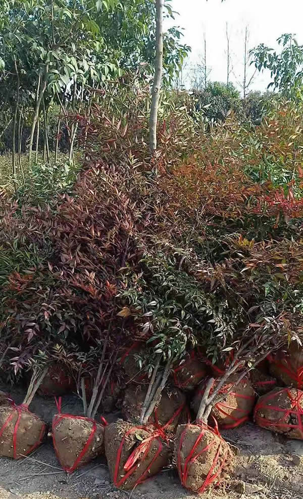 发黑根或多余根应剪去,按常规法加土栽好植株,浇足水后放在荫凉处,约15天后,可见阳光。温度南天竹在半荫,凉爽,湿润处养护较好。强光照射下,茎粗短变暗红,幼叶“烧伤”成叶变红,十分荫蔽的地方则茎细叶长,株丛松散,有损观赏价值,也不利结实。南天竹适宜生长温度为20℃左右,适宜开花结实温度为24~25℃,冬季移入温室内,一般不低于0℃。翌年清明节后搬出户外。浇水南天竹浇水应见干见湿。干旱季节要勤浇水。