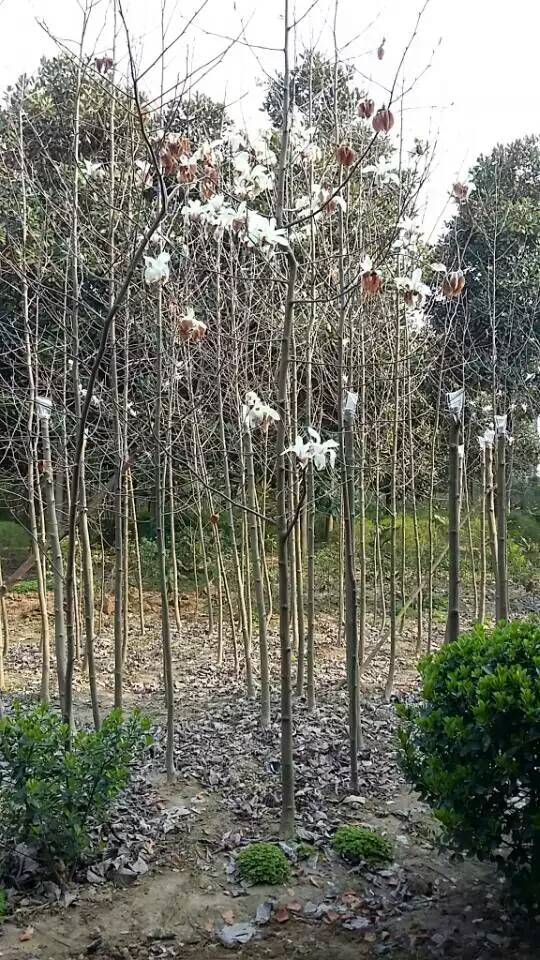 好选择4—5年生以上的苗木为宜。【3】栽植技术在进行红玉兰栽植前,先对土壤进行培肥处理,精耕细作。在树木挖掘栽植穴时,一定要将树穴内的土壤上层熟土与下层新土分开放置,对于黏重的土壤或沙性过强的土壤,要进行土壤调理,使之保肥透气性更适合红玉兰的生长。栽植时树穴底部施入腐熟有机肥并与土壤进行混匀,然后再将树木放入树穴,回填土时先回填表土,后回填生土。回填完毕后,时间进行浇灌透水(定根水)。