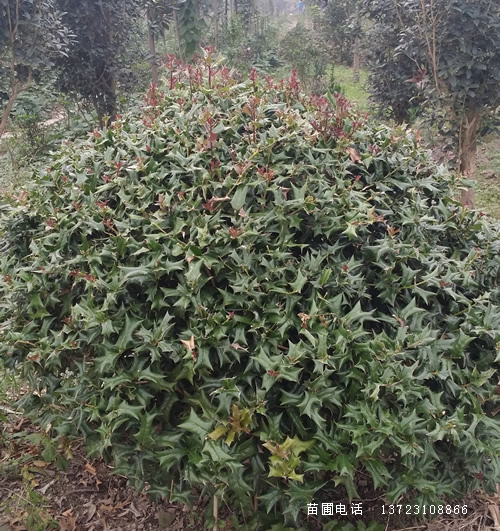 枸骨球价格,构骨球价格:蓬径30-40-50-60-80-100-120-150公分;5-7-12-18-30-50-70-110元 在成熟时为暗蓝色,或者紫黑色,表面还分布有一层蜡粉一样的东西,一串一串的,直接生长于功劳植株的顶端。图为阔叶功劳结出的果实6,枝干的区别其实,单丛叶片,花序,果实这几点已经可以很轻易的就把有刺枸骨与阔叶功劳给区分开了,但是二者的枝干也有稍微的差异,在这里我也简单地给大家提一下:枸骨的嫩枝上一般会有比较明显的纹路,而且上边有一层柔毛覆盖,而那些稍微有一些老的枝干,比较光滑,颜色主要为褐色。二年生构骨苗_冠80-1米构骨球_构骨苗高40-60公分 枸骨的嫩枝上一般会有比较明显的纹路,而且上边有一层柔毛覆盖,而那些稍微有一些老的枝干,比较光滑,颜色主要为褐色。 花序为总状花序,一般是4~10个簇生,生长于植株的顶端。花序的长度一般在长3~7厘米,花梗长度在2~2.5厘米,颜色为鹅黄色,花瓣为长长的圆形。图为阔叶功劳开出的花朵5,果实的区别枸骨与阔叶功劳的果实都是在秋季成熟的,从颜色,到形态上二者都有很大的区别:枸骨的果实为椭圆形,在成熟时为鲜艳的红色,着生于原本开花的叶腋处,一簇一簇的,满株都是红果。 这是与片的一个很大区别。图为阔叶功劳的叶片还有,从叶片的背面来看,片的背面为淡绿色,叶片的两面都没有毛,而阔叶功劳的叶片背面则为淡黄色,正反面颜色差异较大。3,花朵的区别枸骨与阔叶功劳花序的生长位置,以及花序的样子都是有很大差异的:枸骨的花期在4~5月份,花序是簇生于枸骨植株上两年生枝条的叶腋内,花朵为淡淡的黄绿色,开花时一簇一簇的,十分的较小可爱。 但同时也是差异比较大的一点,我们只要仔细观察就不难发现它们的叶片形态,以及叶片的着生方式都是不一样的:枸骨的叶片为单叶互生,并没有两个叶片是直接对着的,另外,片的先端有三个尖刺,中间的刺向叶背面卷曲的比较明显,图为枸骨的叶片而阔叶功劳的叶片为复叶羽状,两个叶片在小枝上是相对而生,像羽毛一样平展着的,叶片呈卵状或者椭圆形,叶片边缘的锐刺也比枸骨要多一些。另外。 二者的区别主要有哪些?1,株形的区别首先从远处来观察株形的话,我们会发现枸骨与阔叶功劳的株形差异还是蛮大的:枸骨主要是灌木,或者小乔木,高度一般是在0.6~3米之间,在园林上常用的栽植株形主要是枸骨球,或者造型枸骨等,图为枸骨球在园林上的应用而阔叶功劳,是小灌木,高度一般是在0.5~2米之间,再高的很难见到,其株形与南天竹十分相似,枝干也是分层分布的。图为阔叶功劳在园林上的应用。 希望对大家能够有所帮助,下次再也不要错把枸骨当做功劳,二者傻傻分不清了!一,首先从植物学分类上来说图为枸骨枸骨属于常绿的灌木,或者小乔木,属于冬青的植物,品种主要分为有刺枸骨,和无刺枸骨。而功劳虽然也是常绿的小灌木,但是却属于小檗科的植物,品种主要分细叶功劳,阔叶功劳,和华南功劳这三种。其中,常常被大家混为一谈,分不清楚的主要是有刺枸骨,和阔叶功劳。 很多读者朋友看到后都留言说我写错了,说这种植物的名字其实叫做“功劳”,并不是我所说的枸骨。另外,鸟不宿也是另外一种植物的称呼,与枸骨毫无关系,但事实真的是这样么?当然不是,因为从科属分类上来说,枸骨与功劳完完全全就是两种毫不相关的植物。之所以有很多人会把它们认错,并且混为一谈,其主要是因为二者的叶片稍微有些相似,但是,如果你观察的足够细心的话,其实不难发现,它们的外观差异还是蛮大的!今天。图为枸骨前两天我写了一篇关于枸骨的文章在这里我就简单地将枸骨与功劳的区别给大家总结一下因为它们的叶片乍一看是十分相似的。二叶片的区别叶片是有刺枸骨与阔叶功劳为相似的一点阔叶功劳的叶片并不会明显的向叶片背面卷曲图为枸骨开出的小花而阔叶功劳的花期为7~8月份看着十分的喜人:图为枸骨结出的果实而阔叶功劳的果实为卵圆形或者灰白色。图为枸骨树的枝干而阔叶功劳的枝干大多都为灰色的十分影响枸骨的观赏价值。而阔叶功劳与细叶功劳或者橙皮精油等渗透剂的使用每天为大家更新园林养护技术知识,以及关于植物的小秘密!。 微型盆景的日常修剪,多在其生长期进行,因为此时植株生长快,萌发力强,为了控制形态造型,因而要经常采取摘心抹芽修剪等方式进行养护。对于落叶品种的树桩,应在落叶后,将枝,徒长枝,交叉枝,重叠枝,病虫枝等一并除去,使其层次分明,才能保持美观。对于松柏类的植物,修剪不宜使用剪刀,否则会使愈合伤口引起锈斑色,应用手摘去。真柏在5月下旬至7月上旬剪去树冠下的枯枝。 保持养分的供应,以利提高其坐果率,在落叶杂木性的盆景中,除生长太弱外,一般不宜多施肥,否则使其徒长而影响姿态的美观。微型盆景的制作,一般来讲有两种方法,那就是修剪和蟠扎。修剪多采取岭南盆景制作手法,截干蓄枝,控制枝条走势,形成优美的枝爪,诸如雀梅,福建茶,金豆等,蟠扎则是针对枝条弹性好,造型容易的树种进行蟠扎造型,诸如松柏类的幼株,杂木类的清香木,黄杨等。二者并不是孤立的而是相互结合进行的。 各有区别。由于微型盆景盆小,若不及时施肥,会造成树势早衰或枝条枯萎,因此,有的为了省事用缓释肥拌入土壤基质中,也可以用缓释器缓慢施肥。施肥要在晴天盆土偏干旱时进行,使肥料不易流失。施肥因品种不